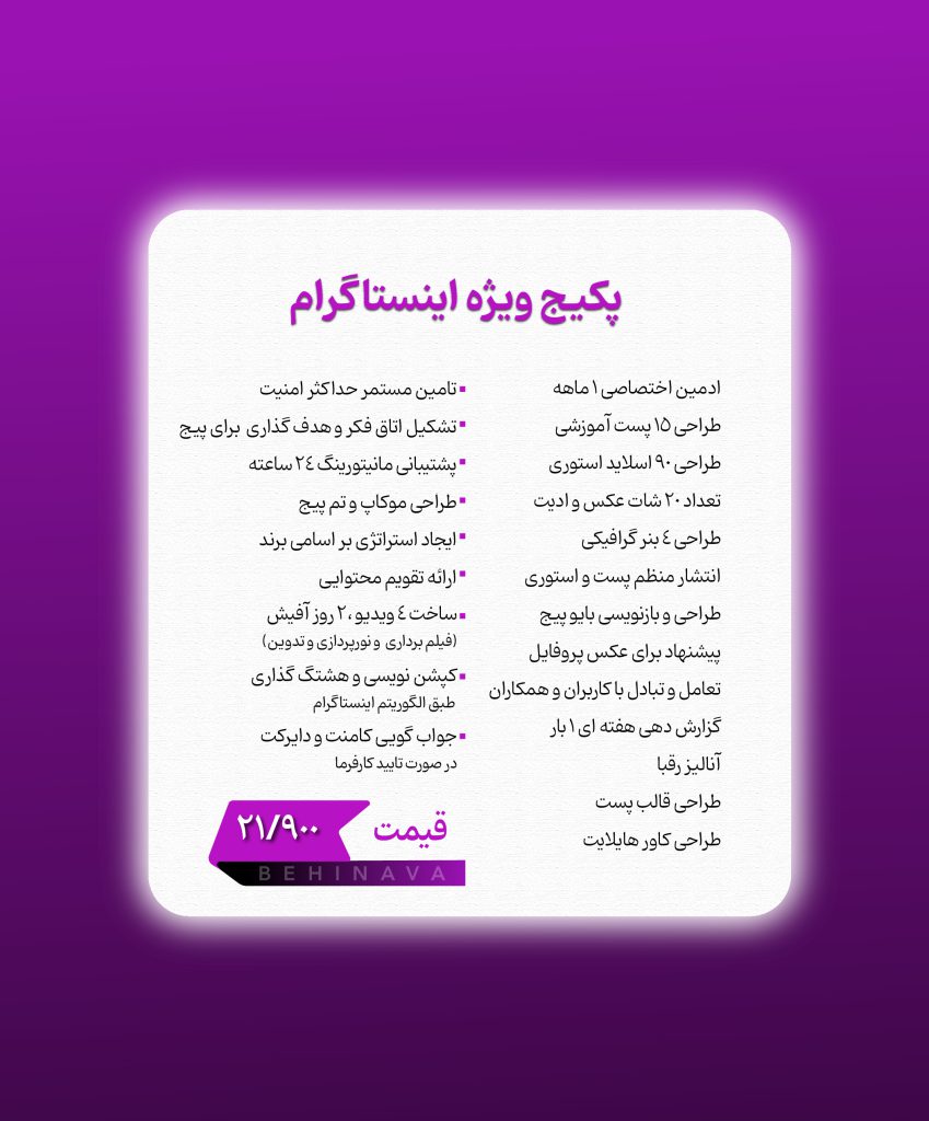 تمام سعی خود را کرده ایم تا بتوانیم در بهین آوا خدماتی بی نظیر به شما عزیزان ارائه دهیم تا در کنار هم شاهد موفقیت و رشد روز افزون شما باشیم. بدون شک اینستاگرام امروز یک محیطی گسترده است که میتواند برای شما موفقیت های زیادی را به بار بیاورد. امیدواریم بتوانیم در راستای اهداف شما بهترین پشتیبانی را به شما دوستان عزیز ارائه دهیم.